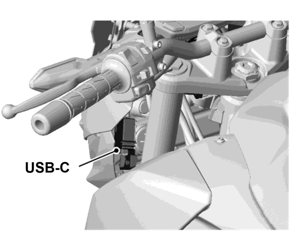 Water resistant USB-C outlet conveniently mounted next to the headlamp cowling. Vibration damped and socket can be sealed with cap. Total maximum output is 3A.